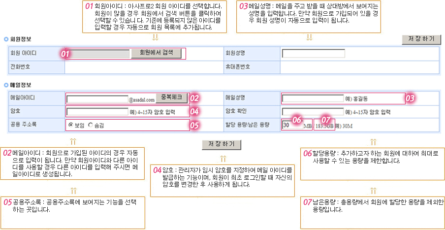 * 웹메일 사용자를 관리자가 추가하는 기능입니다.
