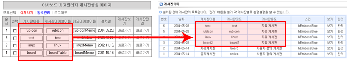 게시판의 경우 게시판의 글 및 첨부된 파일은 이전이 되나 각 게시판의 환경설정(옵션, 머리말, 꼬리말, 글 읽고 쓰기 권한 등), begin.htm, end.htm 등의 디자인 설정 파일들은 이전되지 않습니다.
