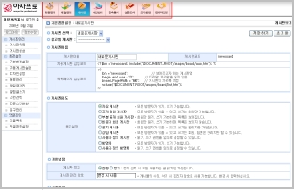 아래와 같이 게시판, 회원관리, 설문조사, 접속통계 등의 프로그램을 원하시는 대로 삽입해서 사용할 수 있습니다.