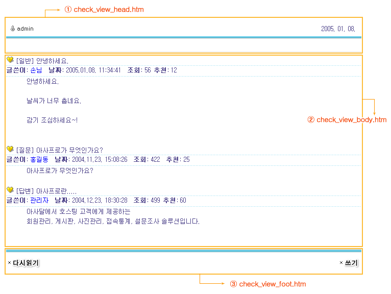 ① check_view_head.htm : 화면 시작부터 게시물 상세정보 전까지의 파일입니다.
