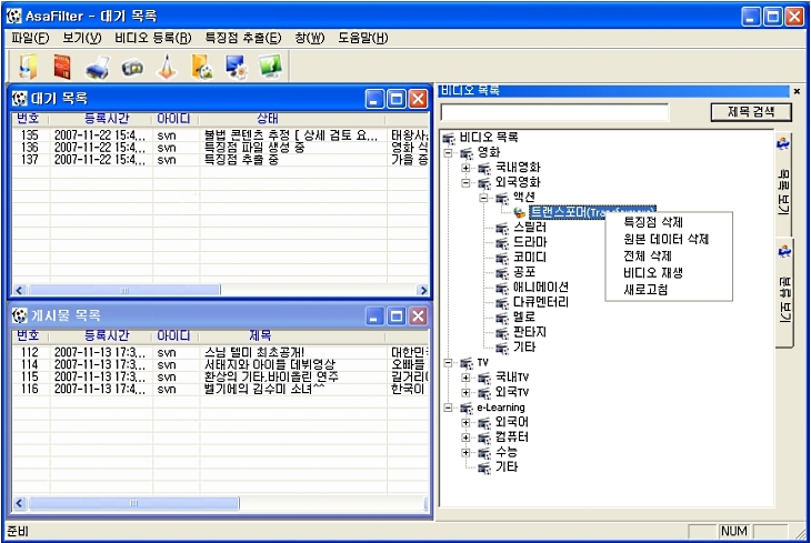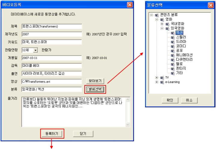 - 비디오 등록 : 저작권 보호를 받을 동영상 콘텐츠의 특징점 데이터베이스를 구축합니다.