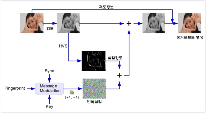 • 핑거프린트를 삽입하는 방법에는 여러 가지가 있습니다. 일반적으로는 사람 눈에 보이는 색상 정보인 공간 영역에 삽입하며 밝기 정보를 주파수로 변환한 주파수 영역에 삽입하는 방법도 있습니다.