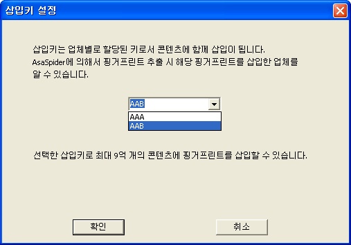아사달로부터 부여 받은 고유의 삽입키 헤더를 설정합니다.