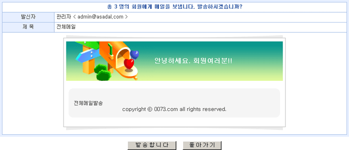 HOME > 호스팅 > 아사프로 > 회원관리관리자 페이지 > 전체메일발송