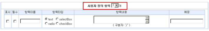 기본으로 제공된 항목이외의 추가 항목을 관리자가 직접 최대 3개까지 정의할 수 있습니다.