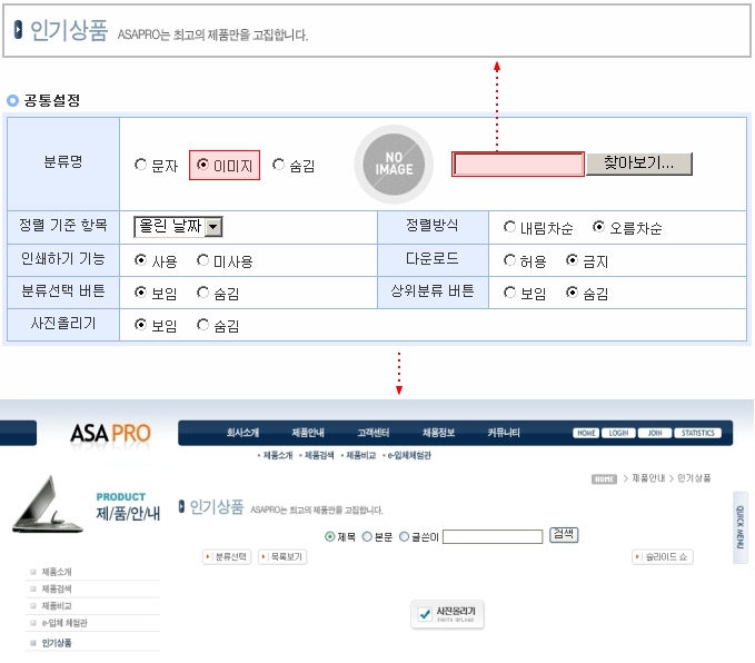 • 1. 환경설정의 공통설정에서 분류명을 이미지로 체크하시고 찾아보기에서 만들어진 이미지를 선택하시면 아래 그림과 같이 타이틀이 추가됩니다.
