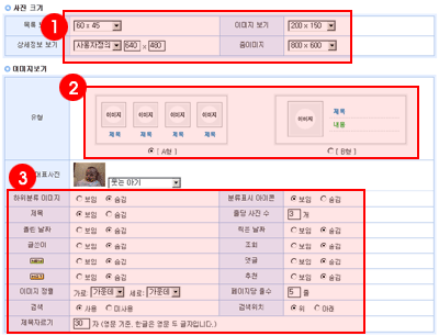 2. 유형 : 이미지 아래쪽에 제목을 보여주거나, 오른쪽에 보여주는 등 이미지를 보여주는 화면의 유형을 정할 수 있습니다.