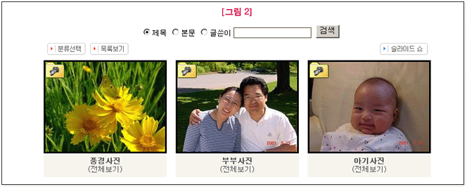2. 분류별 대표사진 : 분류별로 대표로 나오는 사진을 선택할 수 있습니다. 아래 [그림 2]는 분류별 대표사진입니다.