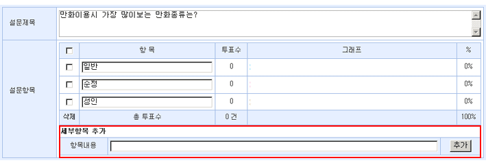 (결과보기 : 설문조사의 결과보기를 형식을 정합니다.