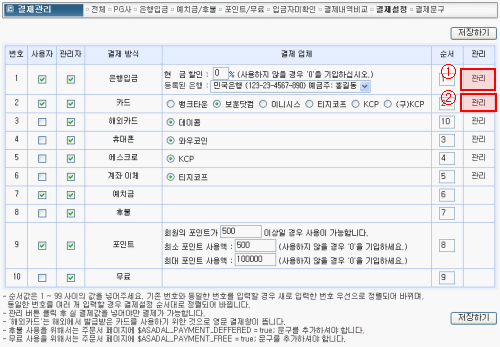 결제 신청 후 받은 정보를 입력하고 저장하십시오.