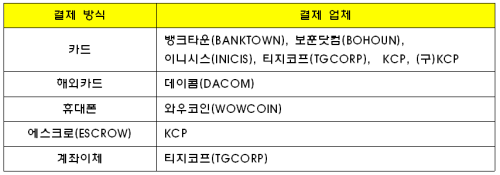 - 보다 많은 결제사를 지원할 수 있도록 하겠습니다.