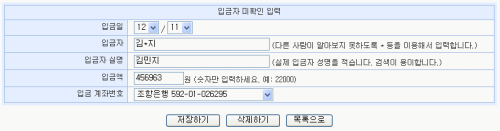 - 입금자: * 표들을 사용하여 알아 볼 수 없도록 입금자명을 입력합니다.