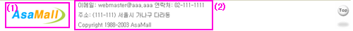 • (2) 카피라이트 : 카피라이트 부분을 수정하고자 하실 때에는 고객님의 계정에 로그인한 뒤 /AsaMall/end.htm 파일을 내려받으셔서 수정하신 뒤 올려주시면 됩니다.