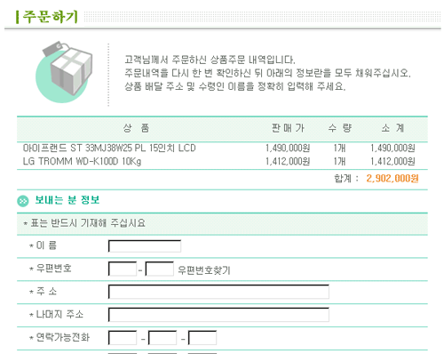 • 주문자 정보와 상품을 수령할 수령인 정보를 잘 기입해 줍니다.