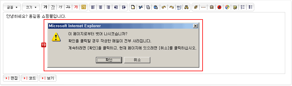 13) 편지 본문 보호 : 편지쓰기 페이지에서 사용자의 실수로 페이지가 이동될 때 작성된 메일 내용을 보호할 수 있는 기능입니다.