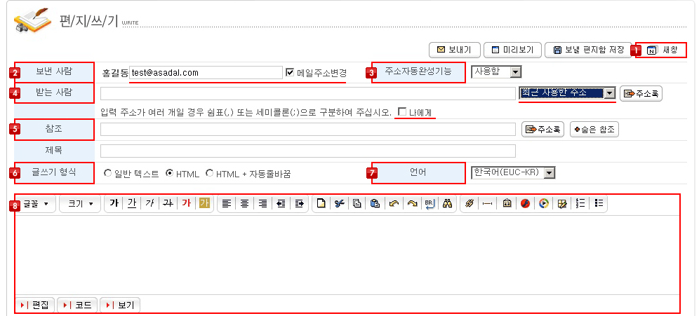 HOME > 호스팅 > 아사프로 > 웹메일 사용자 > 편지쓰기