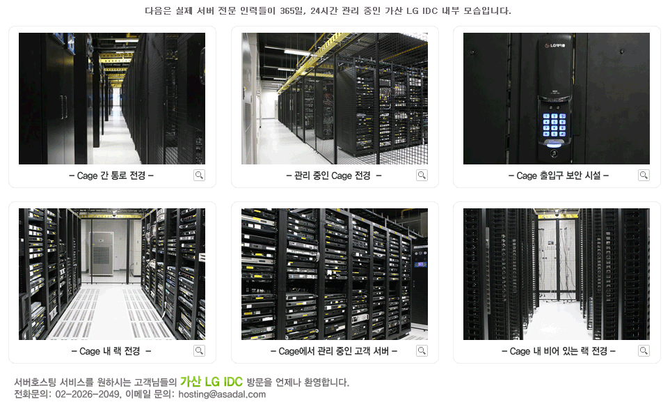 | 가산 LG IDC의 보안 센터는 상황실 통제 아래 3단계 보안이라는 첨단 보안 센터를 운영 중에 있으며 RFID 시스템을 통한 철저한 모니터링 및 신속한 대응을 목표로 하고 있습니다. |