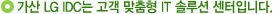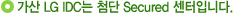 | 가산 LG IDC는 고객 요구 사항에 유연하게 대응 가능한 맞춤형 IT 솔루션 센터이며 보안 강화 추세에 따라 Secured N/W 등 특화된 솔루션을 제공하고 있습니다. |