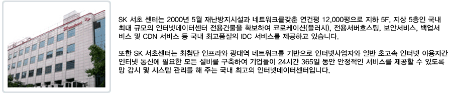 | 네트워크 및 서버 전문가들에 의해 24시간 365일 네트워크/서버 관리 및 모니터링 서비스를 제공하는 공간으로써, NMS(Network Management System)및 SMS(Sever Management System)를 이용하여 SK IDC 내의 모든 사항을 통합적으로 관리 및 통제하는 SK IDC의 핵심부입니다. |