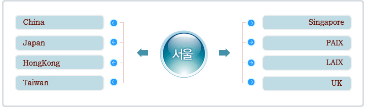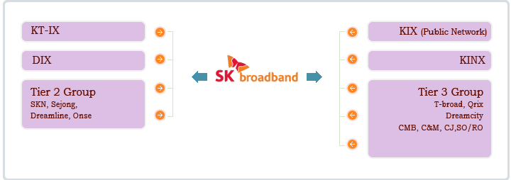 | SK IDC의 인터넷망은 국내 Tier1 사업자로서, 주요 IX, ISP사업자 및 통신사업자들과 국내 최고수준의 연동망을 구축하여 운영입니다.